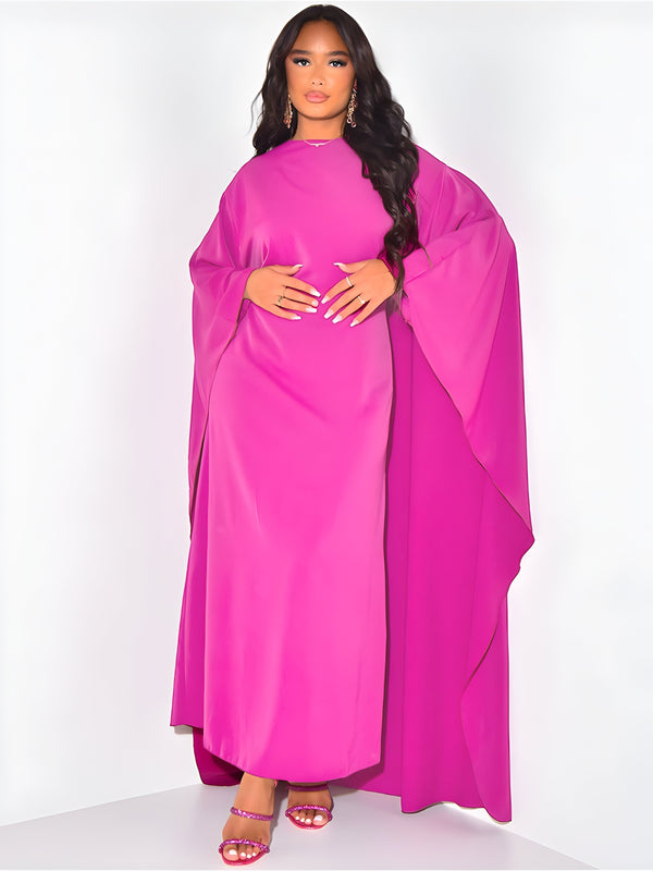 Maxi jurk - verfijnde lange mouwen damesjurk met vloeiende cape