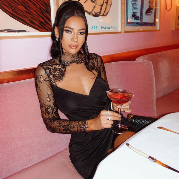 Geef je avond een upgrade met deze kant geaccentueerde mini jurk