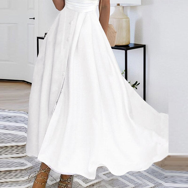 Dames casual maxi jurk - elegante v-hals witte zomerse jurk voor elke gelegenheid