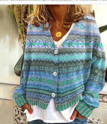 Kleurrijk nordic gestreept damesvest - vrolijk gebreid vest met knopen