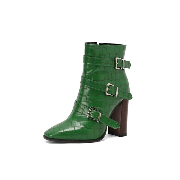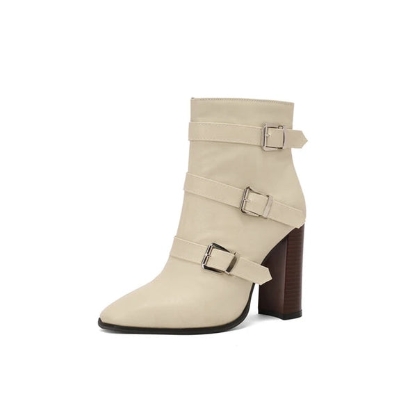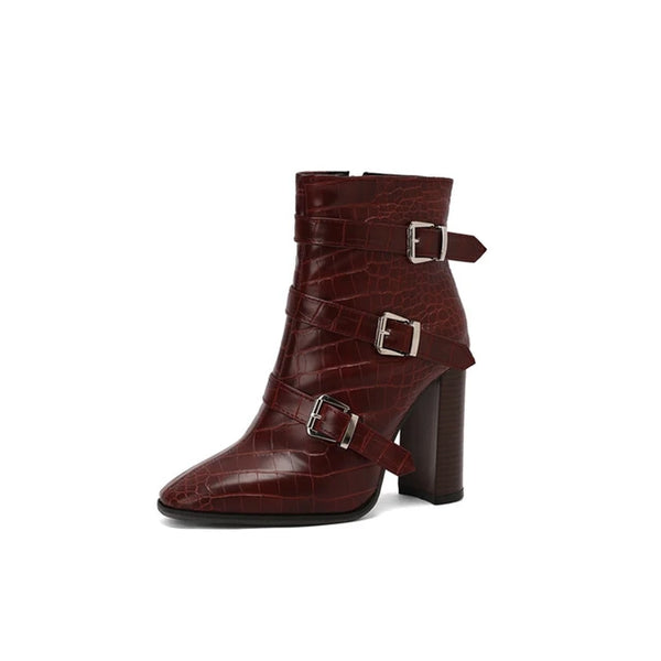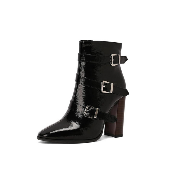Deze leren enkellaarzen voor dames met meerdere gespen hebben een stijlvol ontwerp met een 10 cm blokhak. De ritssluiting zorgt voor een comfortabele pasvorm, terwijl het duurzame leer ze perfect maakt voor dagelijks gebruik of speciale gelegenheden.